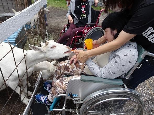 餌やりもしました。ヤギの勢いに、利用者さんよりも職員の方がビビッていました(笑)