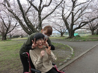 富士市内のあちらこちらで桜が満開になり、お花見を楽しんでいます。ポーズもばっちり決まってますね!